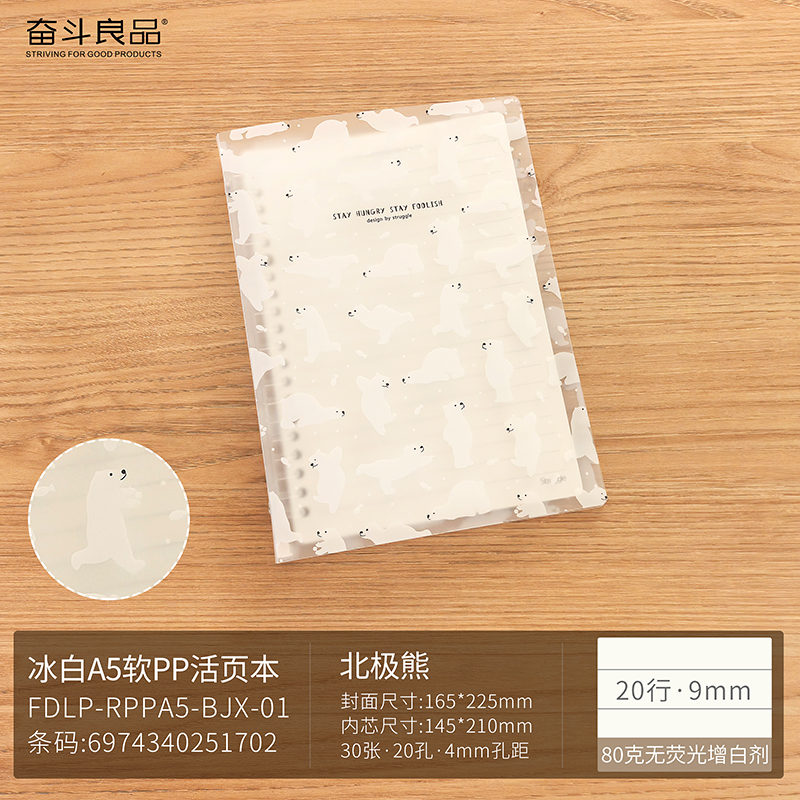 Soft PP Loose leaf Notebook B5- Polar Bear
