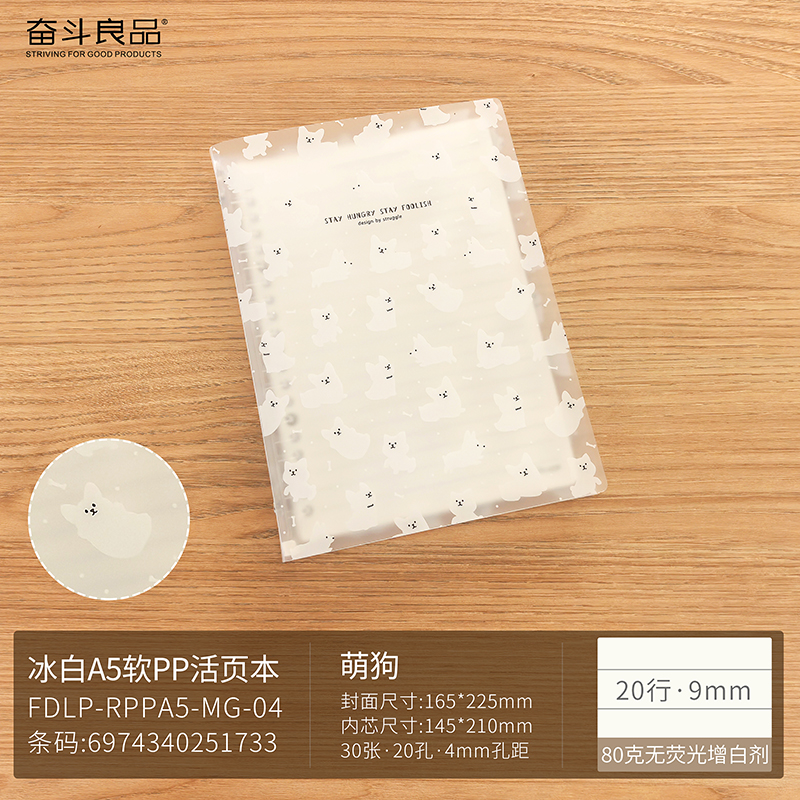 Soft PP Loose leaf Notebook A5- Cute Dog