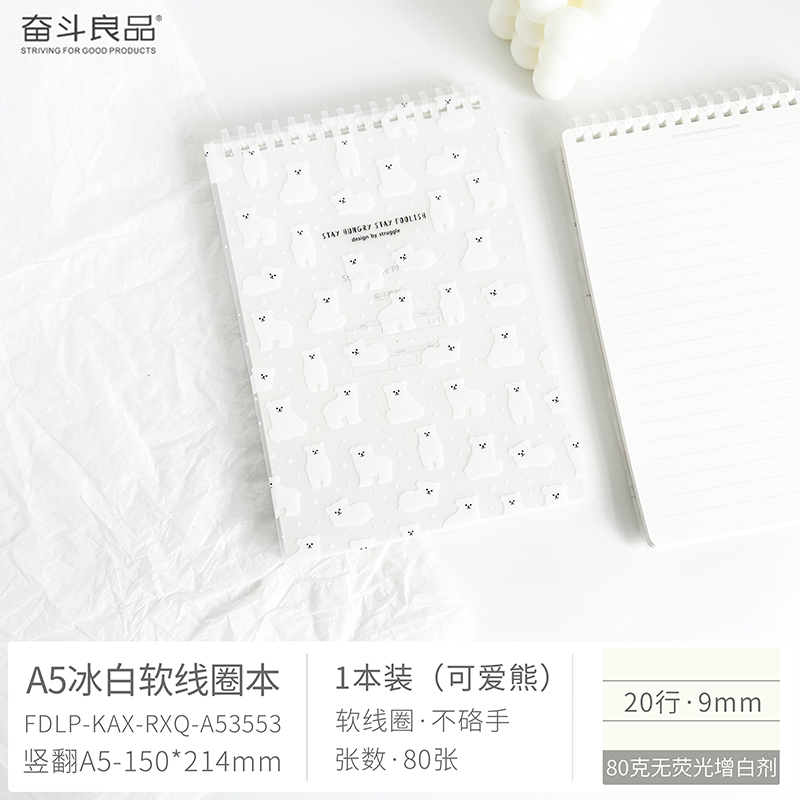 A5 Ice White Cute Bear Flip Soft Coil Horizontal Line