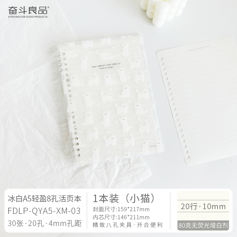 Ice white light 8-hole loose leaf 30 pages