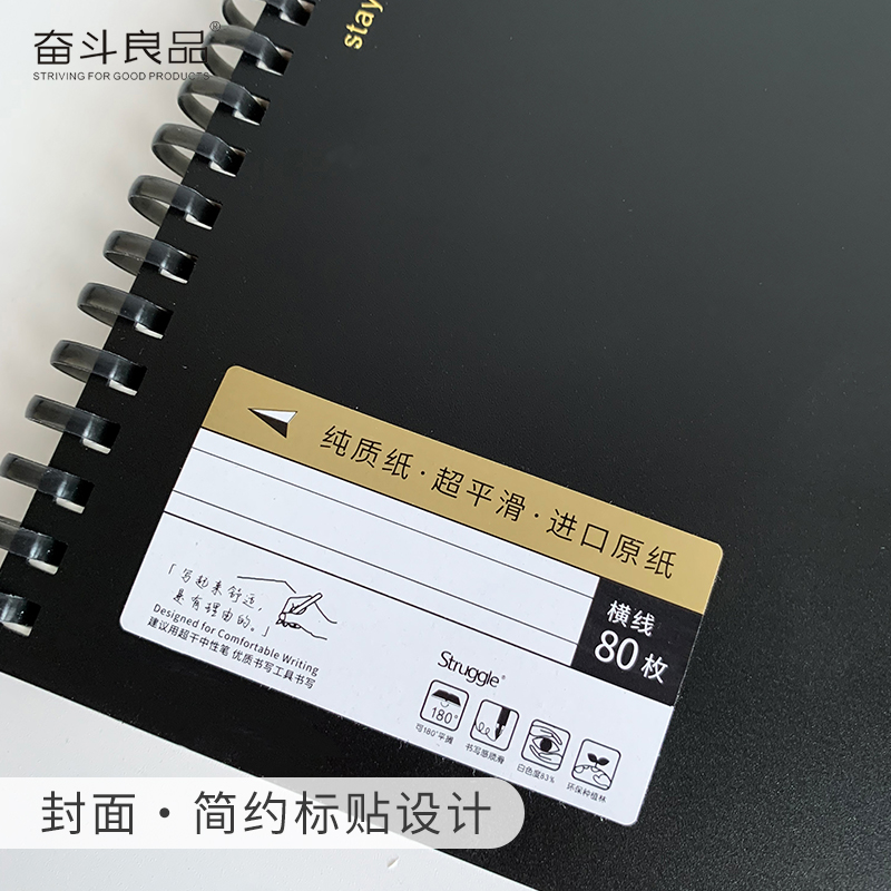 Features: Uses 80g non-fluorescent whitening agent paper. The overall product features a black color scheme, with a simple and pure design that exudes a calm and sophisticated high-end feel, highlighting the product's quality.
