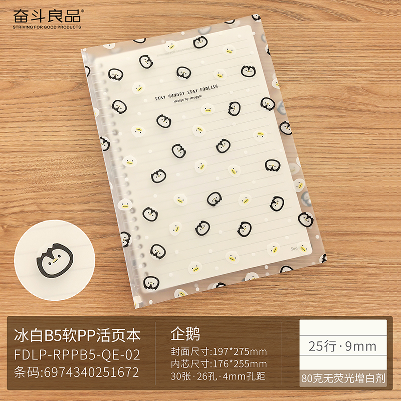Lightweight eight hole loose leaf notebook A5 Penguin