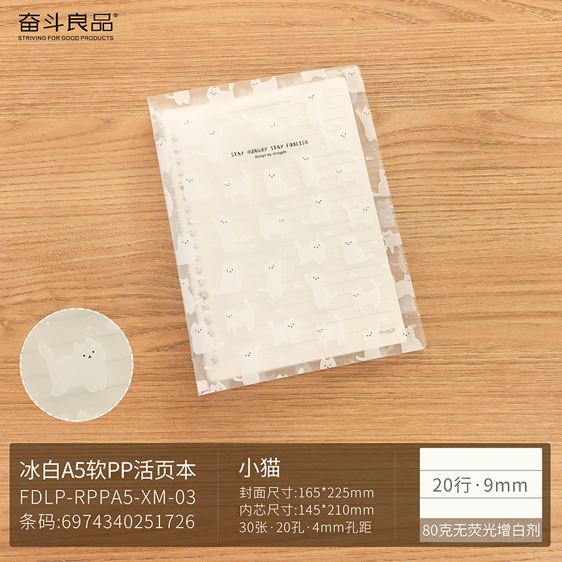 Lightweight eight hole loose leaf notebook A5 kitten