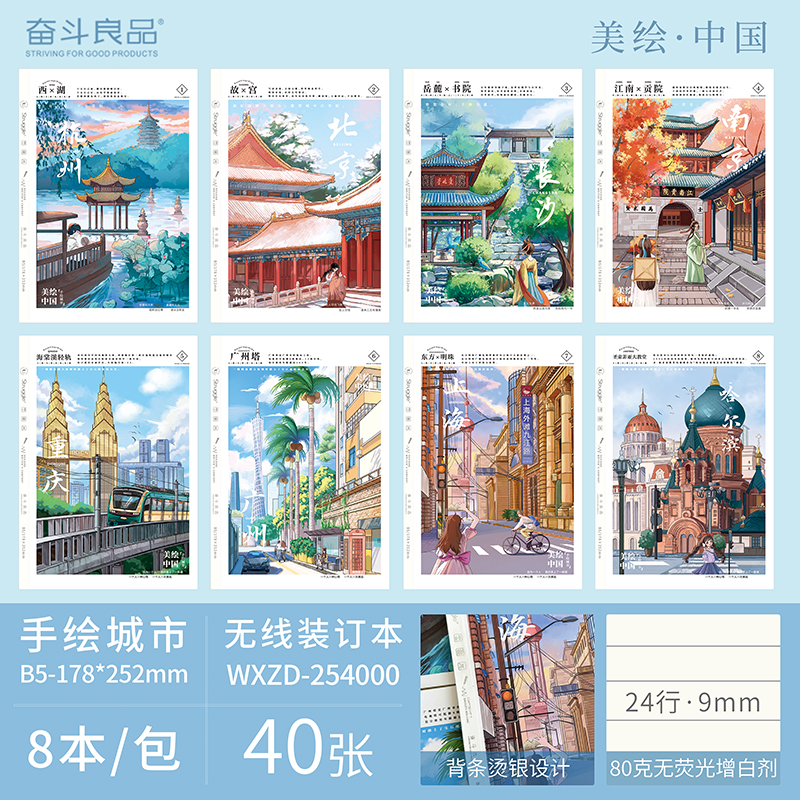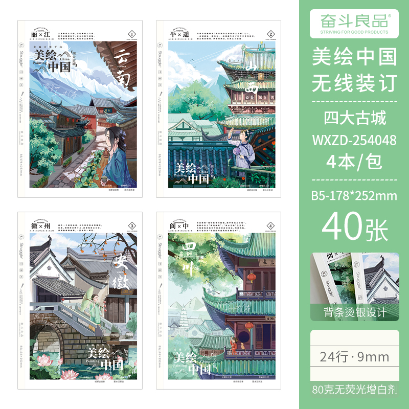Striving for excellence, wireless bound edition, beautiful painting of China - Four ancient cities