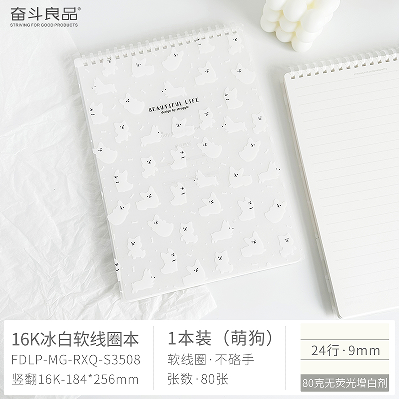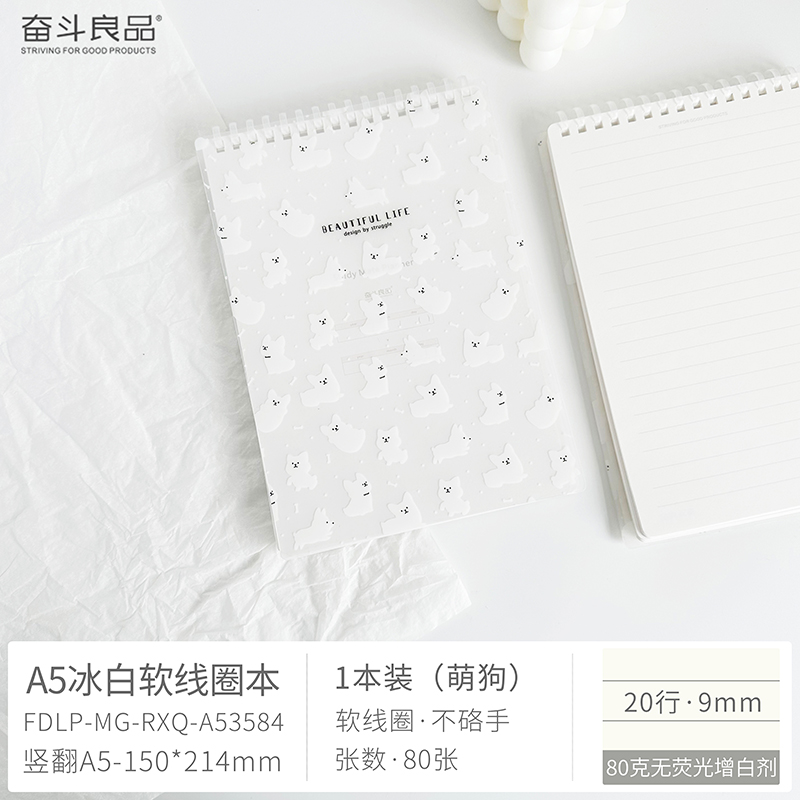 Ice White Cute Dog Flip Soft Coil A5 Horizontal Line