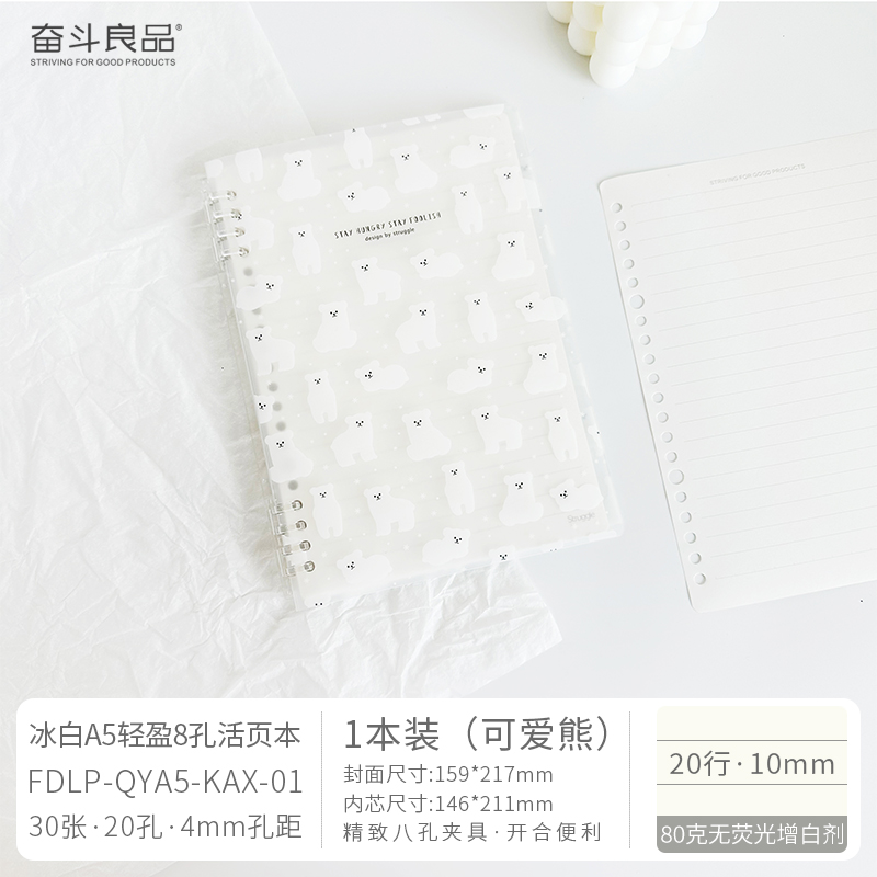 Ice white light 8-hole loose leaf 30 pages